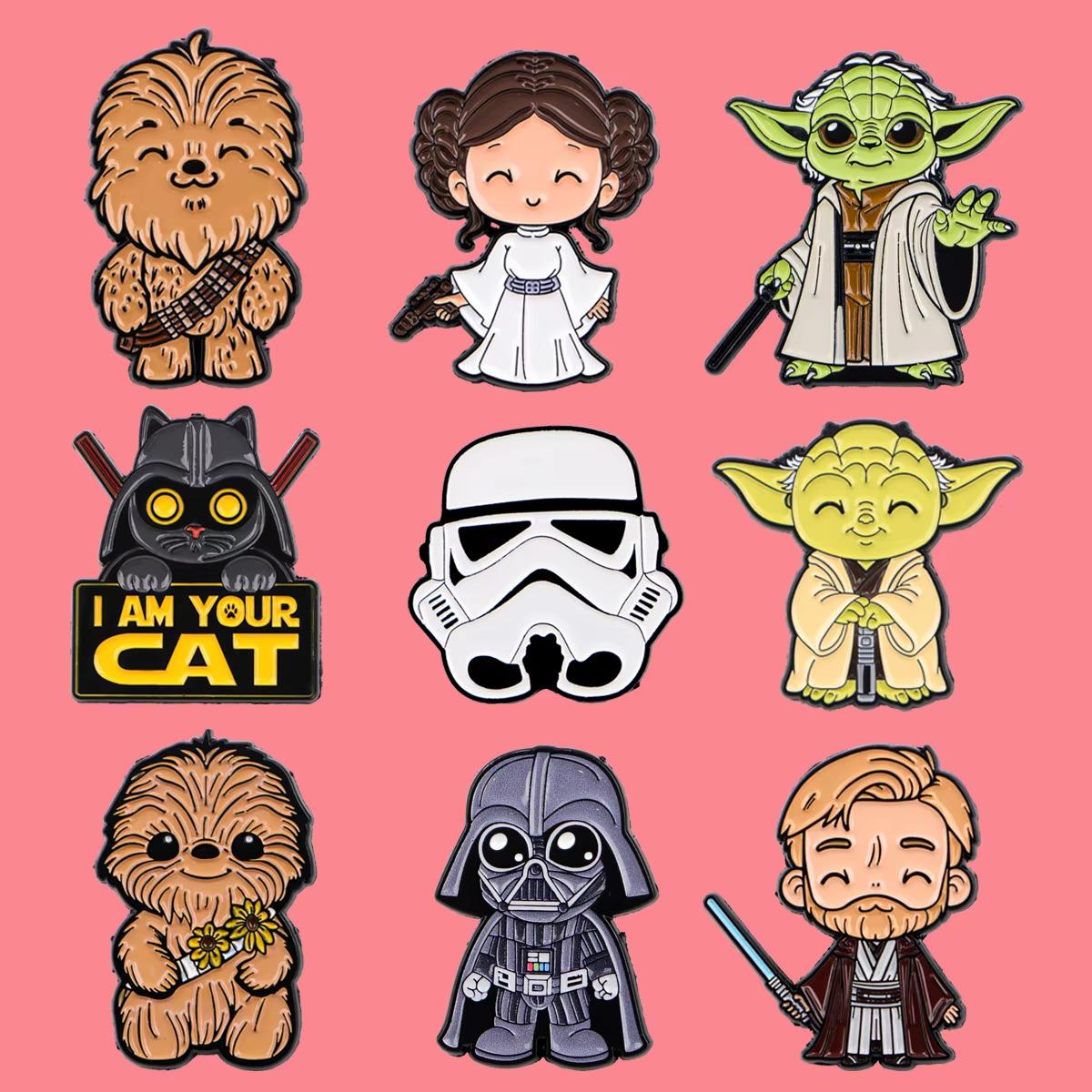 Bring a touch of adorable galactic charm to your collection with these cute Star-Wars-inspired enamel pins! Each pin features a kawaii, cartoon-style version of iconic space-fantasy characters, perfect for fans who love collecting fun, geeky accessories.