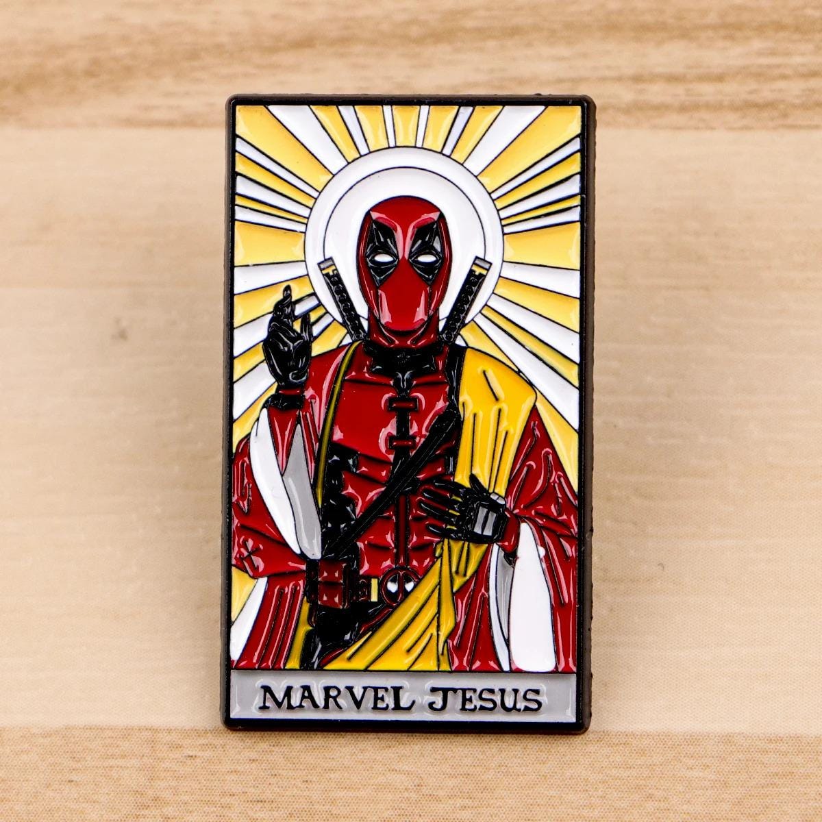 Bold, irreverent, and unforgettable — this enamel pin reimagines Deadpool in divine iconography. Gold-plated with radiant detail, it’s a satirical twist for collectors who love pop culture with bite.