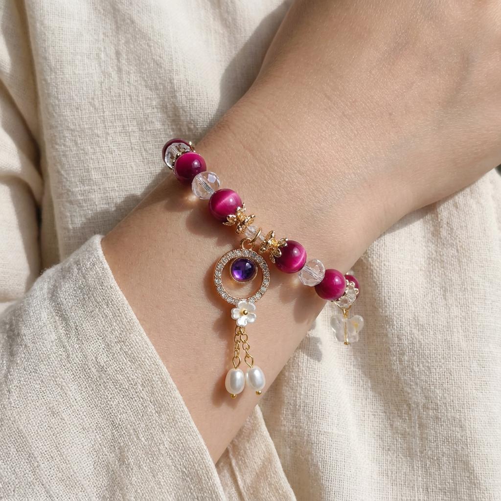 Pink Tiger Eye is often worn as a courage and motivation stone. Many people choose it as a reminder bracelet during stressful periods, new jobs, or major life changes.