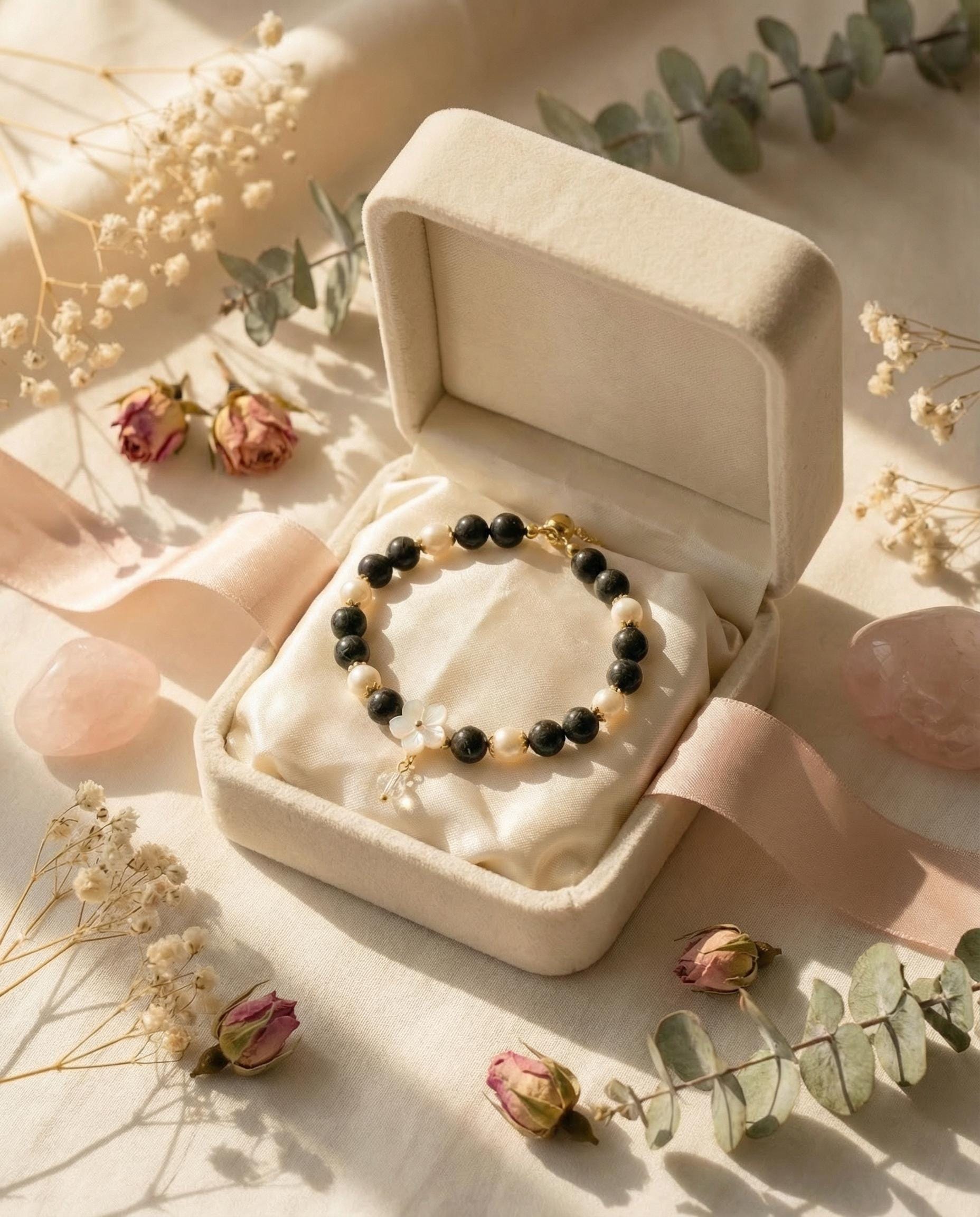 This bracelet makes a beautiful gift for birthdays, anniversaries, bridesmaids, Mother’s Day, or as a self-care treat.